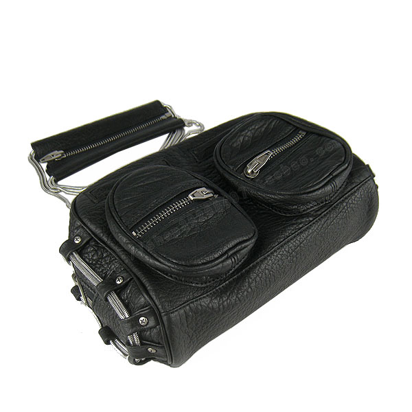 Small Washed leather shoulder bag.· Shiny nickel hardware.· Top Zip closure.· Double Nickel Chain shoulder strap.· Separating leather shoulder pad with zip closure.· Two front welt pockets and two zip pockets.· Interior zip pocket with Alexander Wang embossed leather tag· Size: W25.5 x H17.5x D7.5cm