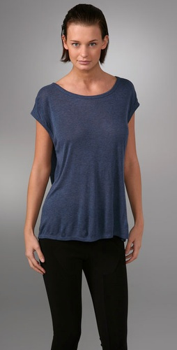 This jersey tee features a wide scoop neck and deep cowl back. Seam details at shoulders. Short dolman sleeves. Semi-sheer.* 26" long, measured from center back.* Fabrication: Jersey.* 100% tencel.* Hand wash or dry clean.